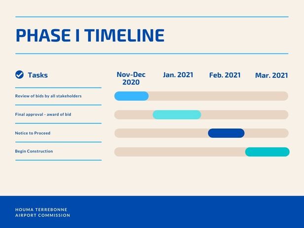 The first Phase in building the infrastructure is constructing Blue Angel Road, which will provide access to the site selected by the airport from Louisiana Highway 24.